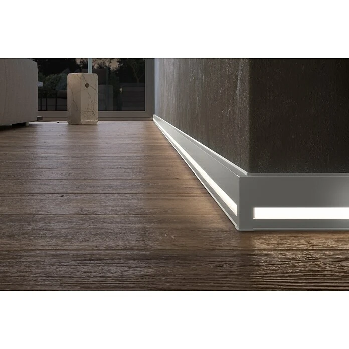 Das Deckprofil Cubica LS 80 Light Down ist das sichtbare Profil der kombinierten Licht-/Kabelkanalleiste passend für alle Bodenbelagsarten. Es besteht aus Polyblend auf Basis von PVC und verfügt über flexible Weichlippen oben und unten. Ob als Lichtakzent für Wohlfühlatmosphäre in den eigenen vier Wänden oder als Sicherheitslösung für Hotels, Schiffe oder Gesundheitseinrichtungen – das Cubica Light System ist die hochwertigste und flexibelste Lichtlösung am Markt. Hinweis: Das Grundprofil sowie das Starter-Set müssen separat bestellt werden.