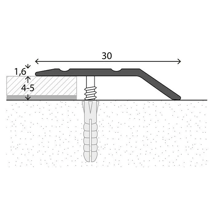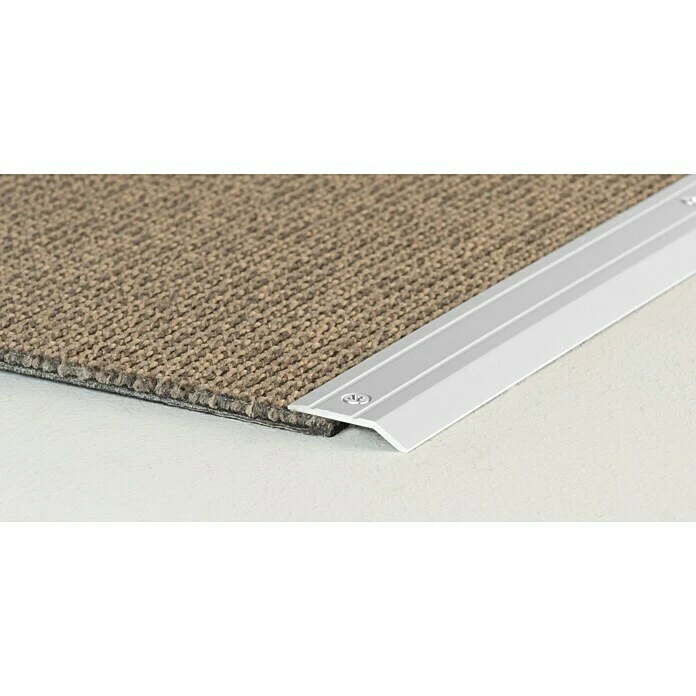 Das LOGOCLIC Abschlussprofil schützt die Belagskanten vor Beschädigungen und beseitigt Stolperkanten mit Hilfe des flachen Profilschenkels. Es eignet sich perfekt zum Abdecken von Nahtstellen verschiedener Bodenbeläge mit wenig Aufbauhöhe, wie zum Beispiel Teppich-, Vinylboden oder PVC. Benötigt wird das Aluminiumprofil etwa an Türübergängen. Es verfügt über versenkte Bohrungen, der Höhenausgleich beträgt 4 – 5 mm.