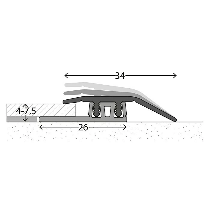 Das LOGOCLIC Anpassprofil wurde speziell für schwimmend verlegte Designbeläge entwickelt. Die verzahnten Profilstege des Oberprofils rasten sicher in den trapezförmigen Aufnahmen des Basisprofils ein. Dabei kann das Oberprofil leicht verkippen und sich variabel in Höhe und Neigung dem Bodenbelag anpassen. Das schmale, flache Profil überzeugt durch eine besonders schöne Optik und bietet gleichzeitig großzügige Dehnungsfugen für die Dimensionsschwankungen des Bodenbelages. Bei Bedarf kann das Oberprofil gelöst und anschließend wieder im Basisprofil verankert werden. Die Montage ist schnell und einfach. Zunächst wird das Basisprofil mit Montage- oder einem Zwei-Komponenten-Kleber auf dem Untergrund verklebt. Nach der Bodenverlegung wird das Oberprofil einfach eingeclipst. Hinweis: Passender Klebstoff oder Montagematerial ist separat zu erwerben.