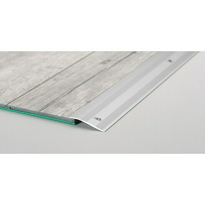 Das LOGOCLIC Rampenprofil schützt die Kanten des Bodenbelags vor Beschädigungen. Es bildet einen flachen Auslauf, so werden Stolperkanten vermieden. Das Aluminium-Rampenprofil ist für Bodenbelagstärken von 2 – 5 mm geeignet und verfügt über versenkte Schraublöcher.