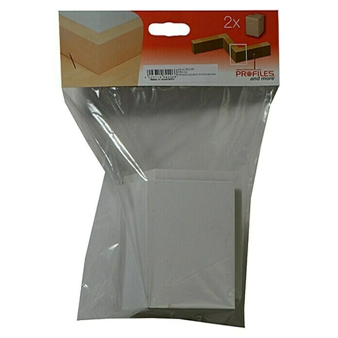 Die Außenecke von Profiles and more ist aus bereits auf Gehrung zugeschnittenen Leistenstücken gefertigt. Sie erleichtert die Montage von Rohrabdeckleisten und erspart den komplizierten Gehrungsschnitt.