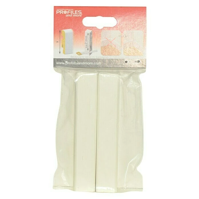 Die Eckstäbchen von Profiles and more sind universell als Innen-, Außen- oder Endstücke einsetzbar. Die optisch dezent auffallenden Stäbchen ersparen das mühsame Schneiden von Gehrungen und bieten gleichzeitig Schutz von exponierten Außenecken. Vor der Montage werden die Eckstäbchen in der Höhe an die Sockelleiste angepasst – Höhe der Sockelleiste +2 mm – und schließlich an die Stirnseiten der Leiste geklebt. Zum Befestigen dürfen keine silikonhaltigen Klebstoffe verwendet werden. Geeignet sind Montagekleber auf PUR-Basis oder Kontaktkleber. Bei Verlegung von Kabeln hinter der Sockelleiste wird das Stäbchen einfach an der Rückseite entsprechend ausgeschnitten.